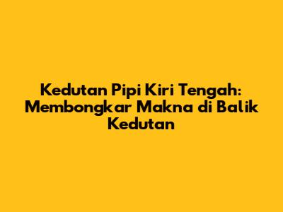 Guys, pernah gak sih tiba-tiba pipi kiri tengah kalian kedutan? Pasti bikin penasaran banget, kan? Nah, dalam artikel ini, kita bakal kupas tuntas apa arti kedutan pipi kiri tengah, mulai dari perspektif medis hingga kepercayaan yang berkembang di masyarakat. Siap-siap, ya, karena kita bakal menyelami berbagai kemungkinan makna di baliknya!